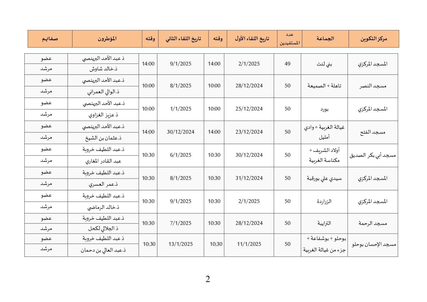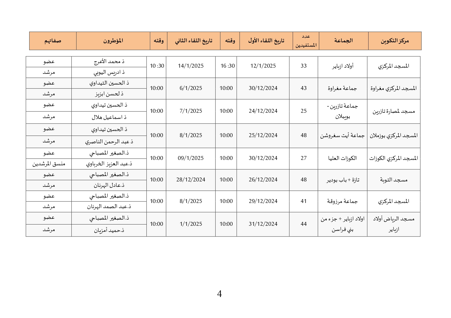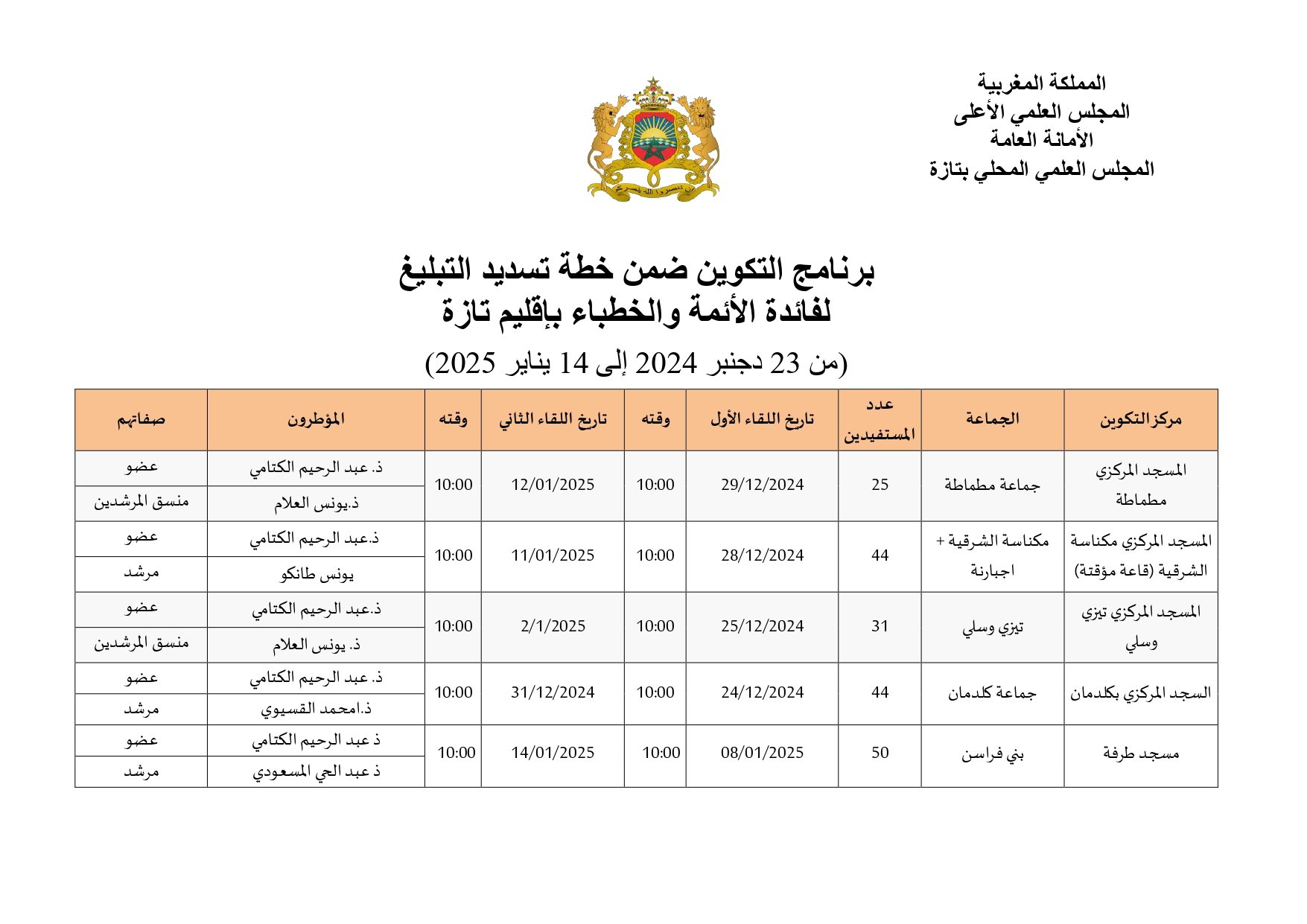 برنامج التكوين ضمن خطة تسديد التبليغ لفائدة الأئمة والخطباء بإقليم تازة(23 دجنبر 2024—14 يناير 2025)