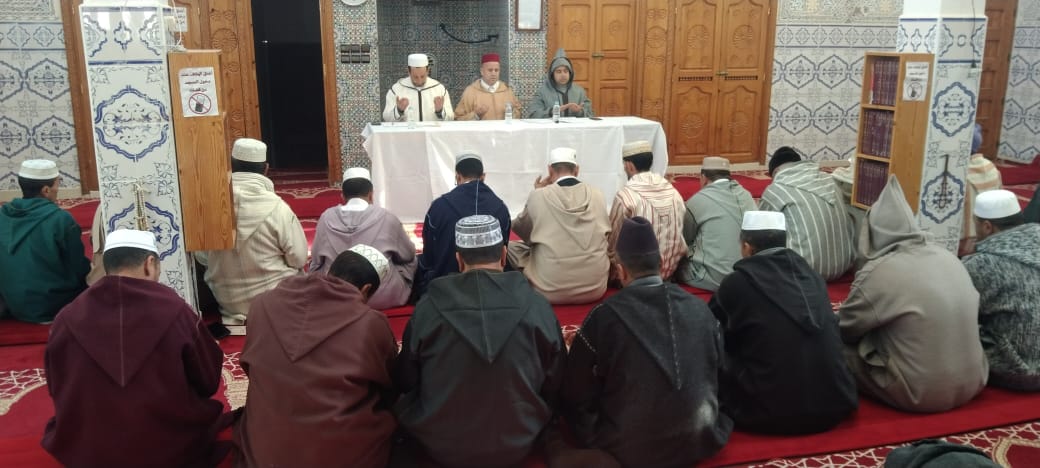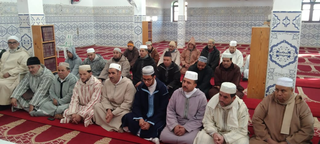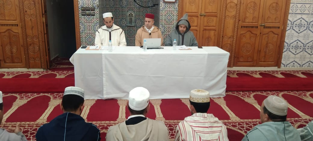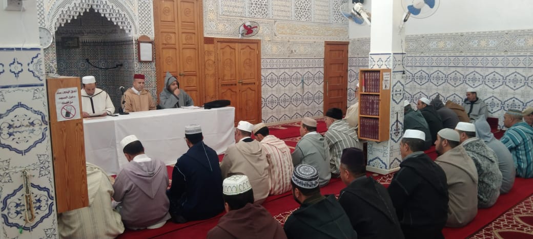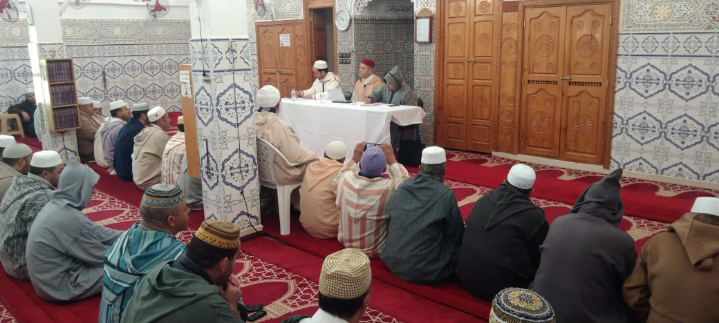 تنزيلا لمقتضيات برنامجه الشهري؛ نظم المجلس العلمي المحلي بتازة ممثلا بخلية شؤون المرأة وقضايا الأسرة بتنسيق مع المندوبية الإقليمية للشؤون الإسلامية بتازة نشاطا علميا، وفق العناصر الآتية: نوع النشاط: دورة تكوينية المحور: ثابت المذهب المالكي مكان النشاط وجماعته: مسجد سيدي عزوز تازة تاريخه: 2026-04-20 توقيته: 17:00 تأطير: الأستاذة فاطمة مزوز عضو المجلس العلمي المحلي بتازة فقرات النشاط: ـ الافتتاح بتلاوة آيات بينات من الذكر الحكيم. ـ درس وعظي للأستاذة فاطمة مزوز عضو المجلس العلمي بعنوان ” حقيقة الموت و ضرورة الاستعداد للآخرة “ – الشق النظري: أحكام تجهيز الميت وفق المذهب المالكي. ـ الشق التطبيقي: توضيح كيفية تغسيل وتكفين الميت . الختم بالدعاء الصالح لأمير المؤمنين صاحب الجلالة الملك محمد السادس نصره الله وأيده. إعداد: ذة : فاطمة مزوز عضو المجلس العلمي مراجعة ونشر: كريمة حبوبي
