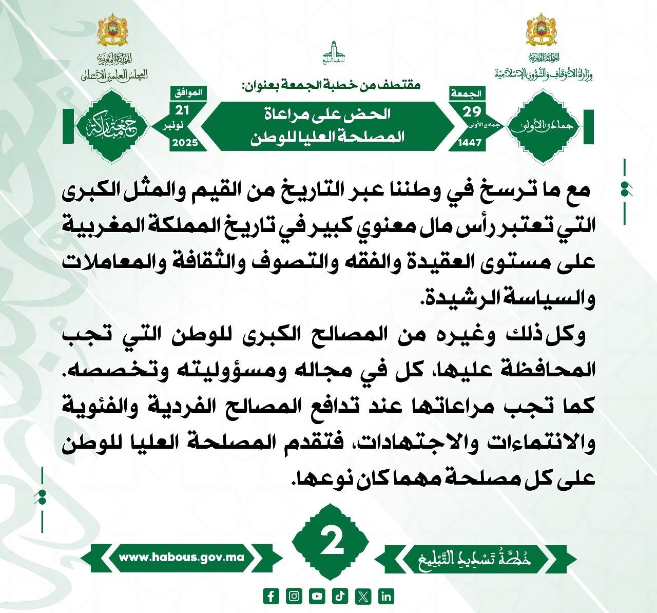 “اَلْحَضُّ عَلَى مُرَاعَاةِ الْـمَصْلَحَةِ الْعُلْيَا لِلْوَطَنِ” (02) .